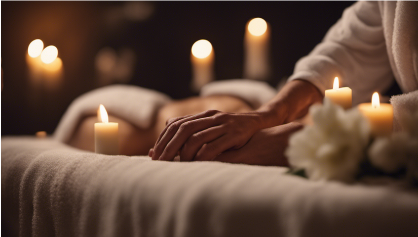Préparation : Vous vous installez confortablement sur la table de massage, dans une ambiance chaleureuse (musique douce, lumière tamisée, huiles de massage chauffées).